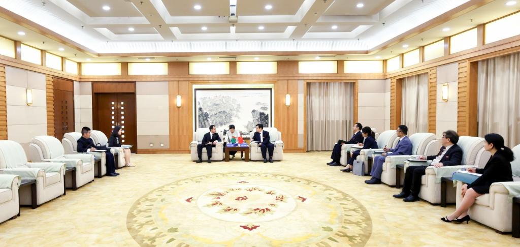 徐业勤对阿曼诺夫·亚历山大一行来访表示热烈欢迎。他介绍了学校的校史校情、优势学科、国际中文教育和土库曼斯坦留学生培养情况。他表示,学校正着力推进“中华民族共同体学”“区域与国别研究”“人工智能”“生物医药”等交叉学科建设,重视对外开放办学,将进一步深化与“一带一路”沿线国家开展合作。