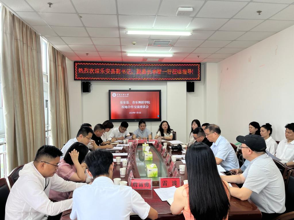编辑:邓曾宇、姜尧 发布时间:2024年07月04日 17:20 浏览次数:7月4日上午,音乐舞蹈学院与江西省乐安县的交流合作座谈会在9楼会议室举行。乐安县委副书记、副县长李智,乐安县政府副县长熊志峰,团县委书记李翔以及政府办干部、乐安县文广新旅局副局长和乐安县写生基地企业代表参加了会议。我校党委副书记、副校长宋发军,党政办公室、党委宣传部和团委负责人,音乐舞蹈学院领导班子和师生代表也参与了此次会议。会议由学院党委书记金军主持。