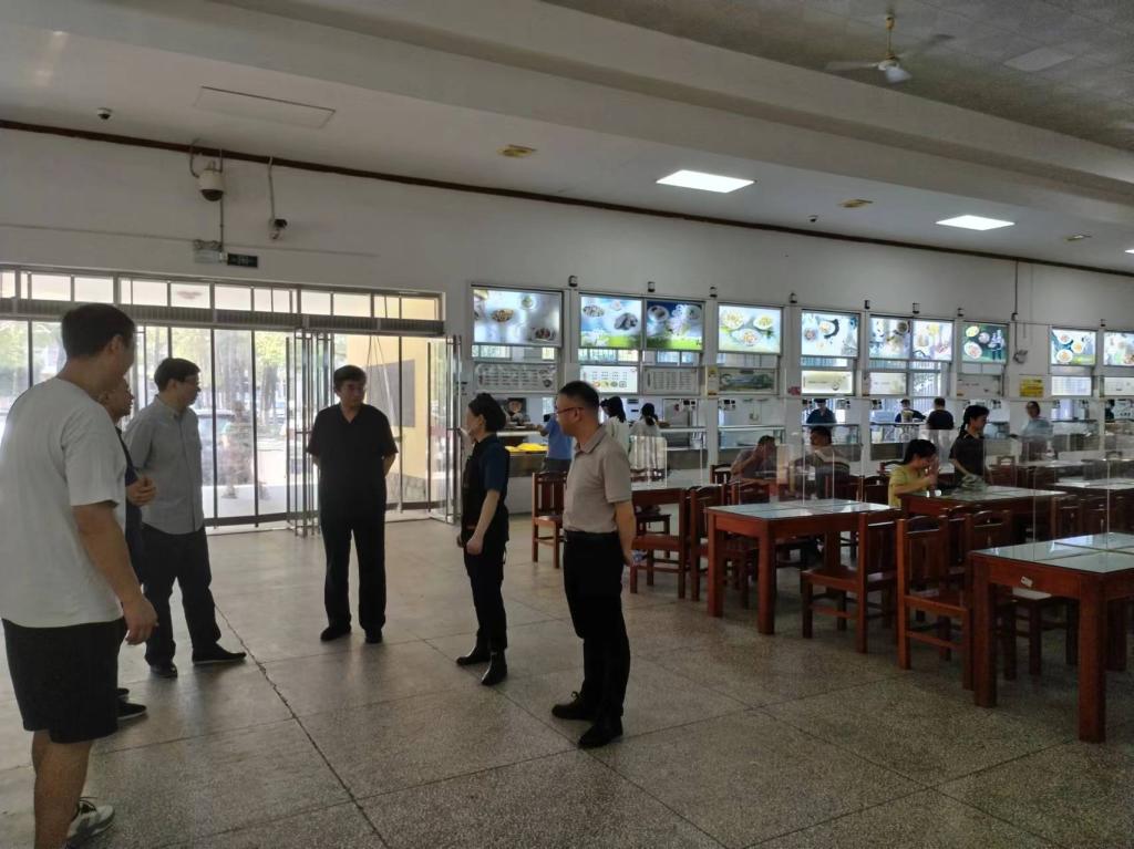 在学生食堂,校领导提醒食堂员工注意防暑降温,并强调要做好食堂的安全卫生工作,丰富菜肴种类,保证食品的质量和卫生,保持干净就餐环境。要了解校内各单位会议和活动情况、留校考研学生情况,及时掌握师生就餐数据,做好伙食保障,服务好师生。