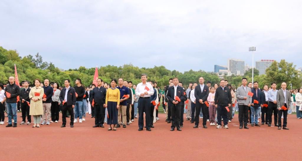 10月1日,我校举行“强国复兴有我 青春挺膺担当”庆祝中华人民共和国成立75周年升国旗仪式。校党委书记边境,校党委副书记、校长刘义,校党委常委、副校长李红燕,党政办公室、党委宣传部、党委学生工作部、团委、党委保卫部、教务处、研究生院等职能部门负责人,各教学单位负责人和青年学生代表1000余人齐聚南湖中心体育场,共同庆祝新中国成立75周年。