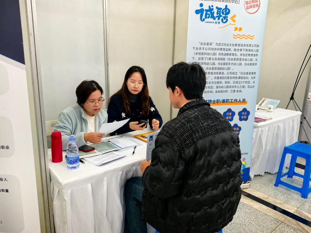 此次招聘会吸引了包括武汉市洪山区新航道培训学校、北京猿辅导、伟度岳立教育科技、高途云集教育科技、嘉卓教育、文众聚力传媒、来胜法商培训学校、优翼文教、新城光谷教育科技发展等共计41家企、事业单位参会,涵盖教育、科技、传媒等多个领域,提供岗位约500个。