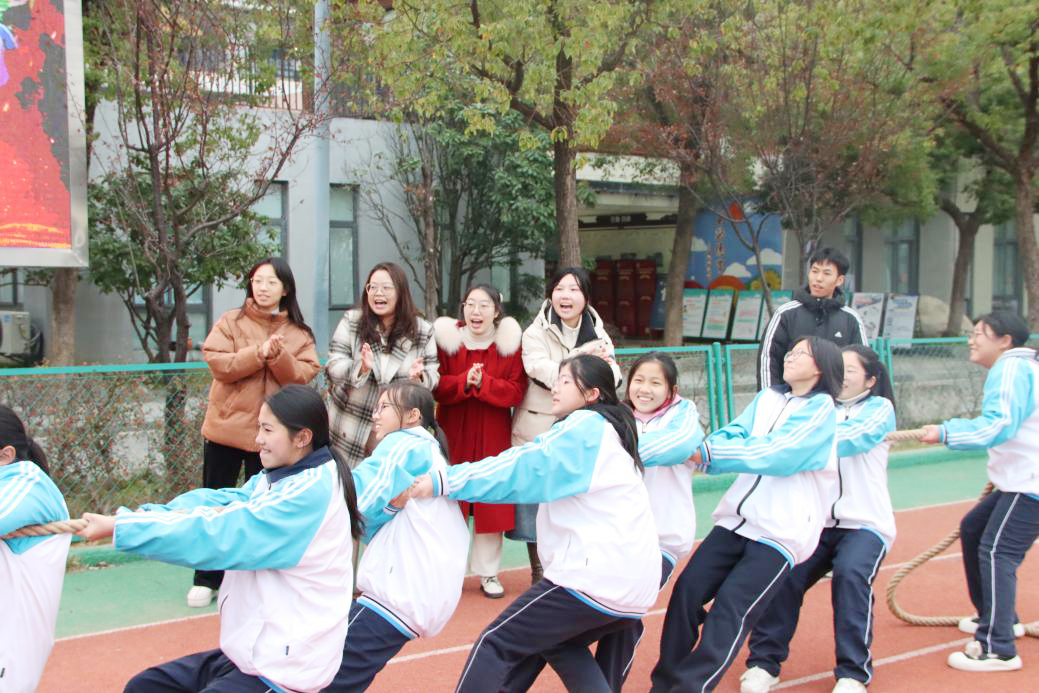 研支团成员为拔河学生呐喊助威。 黄晓琪摄
