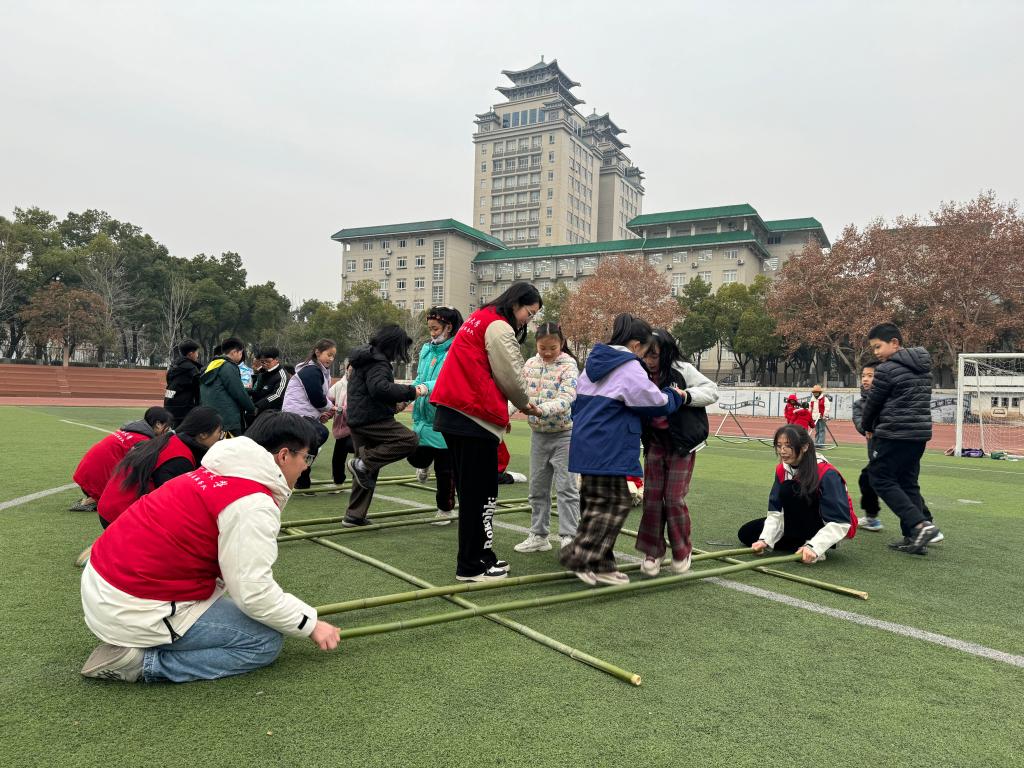 这是今年寒假,我校“石榴籽·同心乐学”小学教育课程走进武汉市190个社区,面向青少年儿童推出的寒假学堂公益托管班志愿服务。此次志愿服务累计招募50余名志愿者下沉社区,开设190余堂围绕铸牢中华民族共同体意识教育的沉浸式体验课程,为5700余名青少年儿童提供品德修养、科学素养、体育锻炼、美育熏陶、劳动教育、安全自护等系列志愿服务。