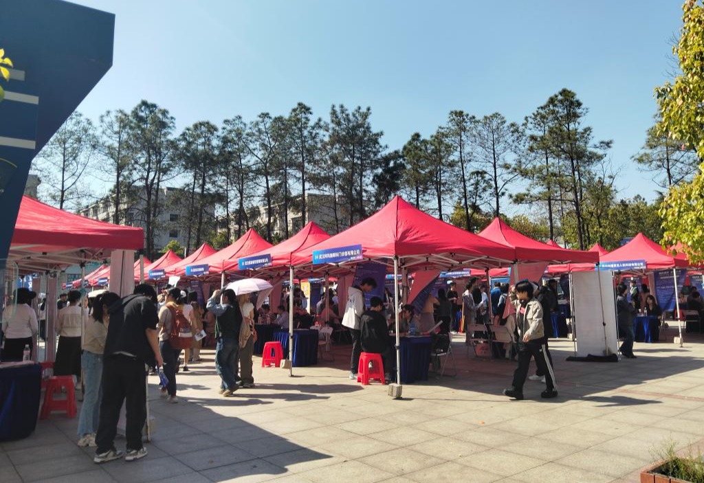 3月25日,江汉区“学子聚汉”工程校园招聘会在我校一、二食堂广场举行。活动共有46家知名企业参会,涵盖医药、金融、教育等领域的多个行业,提供千余岗位,为毕业生与用人单位的精准对接搭建桥梁,实现供需双方高效对接。