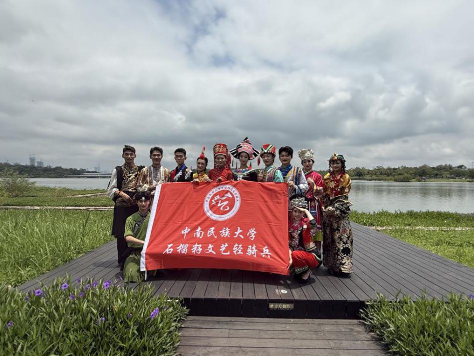 4月21日至23日,我校石榴籽文艺轻骑兵前往湖北恩施,在恩施大峡谷和女儿城的美丽风景中,队员们身着苗族和土家族的传统服饰,手持西兰卡普,通过艺术的形式,再现了土家姑娘出嫁时,母亲邀约邻友帮忙织西兰卡普的温馨场景。