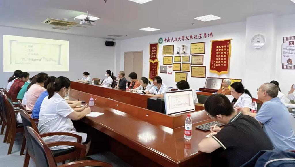 活动在校医院四楼会议室举行。彭教授首先以《夏季养生常用适宜技术》为题,从夏季养生的要点、时机、方法等入手,通过各类真实病例的解析,逐渐引入中医适宜技术,并重点讲解刮痧、艾灸、穴位贴敷、养元通都罐等常见的中医外治方法。