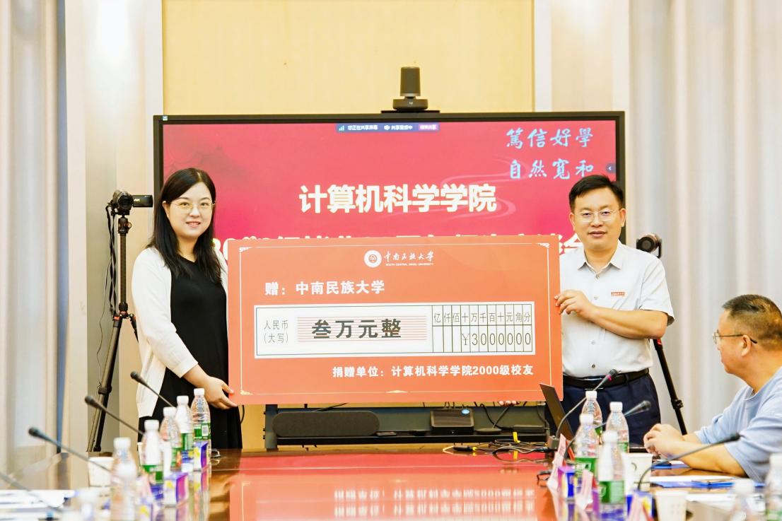 座谈会上,胡军浩对校友们返校表示热烈欢迎,并详细介绍了母校近年来在学科建设、教育教学、人才培养、社会服务等领域取得的成绩。朱晶晶表示,学校一直关心校友发展,希望大家多回来相聚,共同见证母校的变化,共同为母校的发展贡献力量。帖军则从学科建设、教学改革、科研创新和师资力量等方面,向校友们介绍了计算机科学学院专业发展历程。柯尊韬表示,这次校友活动开展时机很好、组织工作很好、校友状态很好、校友未来的发展一定会更好,希望校友们持续关注关心母校、母院,凝心聚力谋发展,同心谱写新华章。现场举行了捐赠仪式,气氛热烈。