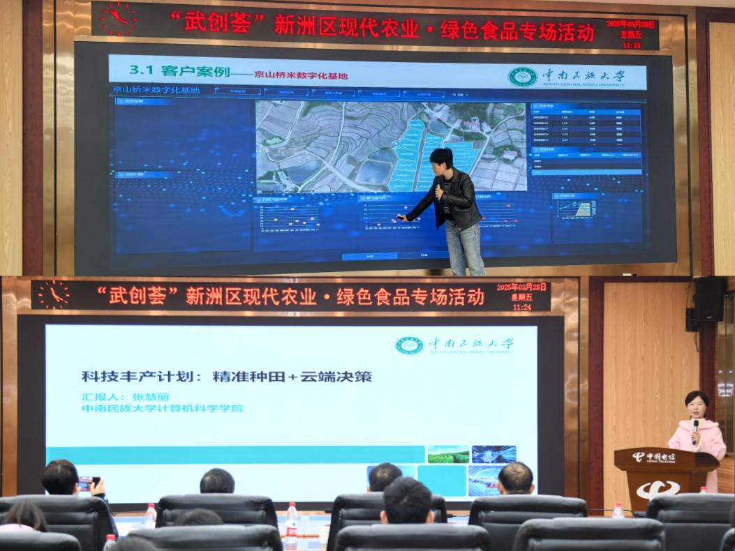 为进一步与产业端深度耦合,助力现代农业数字化转型,3月28日,我校计算机科学学院莫海芳、张慧丽2位教师在“武创荟”新洲区现代农业·绿色食品专场活动中进行“ai 农业”主题技术路演,展示了我校数字农业科研创新成果。