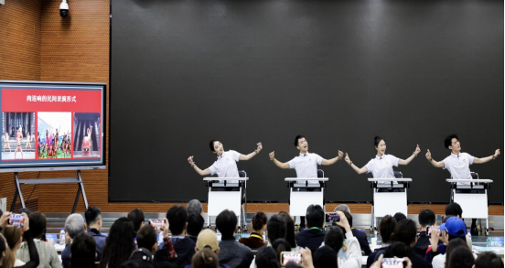中国研究生“文化中国”两创大赛的是中国研究生创新实践系列大赛主题赛事之一,是系列大赛中首个文科主题的创新实践公益性赛事。研究生院高度重视,积极响应并精心组织音乐舞蹈学院多个作品、课程参加大赛初赛申报,最终由音乐舞蹈学院尕藏教授、华毛措教授、孟祥宇老师担任指导教师,2023级舞蹈教育方向研究生曾张诚作为主讲学生,以及胡靖、李林达、赵恩菥、杨雯雯作为展示学生的《美育浸润——湖北民间地域特色中学课桌舞》课程在全国的107门课程中脱颖而出,成功晋级全国总决赛。